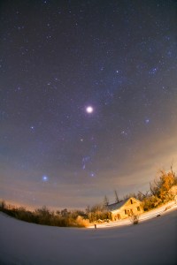 Total eclipse of the Moon, December 20/21, 2010, taken from home with 15mm lens at f/3.2 and Canon 5D MkII at ISO 1600 for 1 minute single exposure, toward the end of totality.