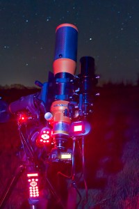 Astrophoto Rig A&M 105mm apo refractor on Celestron CGEM mount, with William Optics 66mm guidescope and Celestron NexGuide autoguider, and Canon 5D MkII DSLR camera.