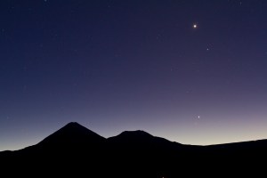 This is the view the morning of May 2, 2011 from near San Pedro de Atacama in Chile, as a grouping of four planets rose over the Andes Mountains just before dawn. The planets are, in a line from top to bottom, Venus, Mercury, Jupiter and Mars. The conical volcano at left is Licancabur, a peak with an altitude of 19,400 feet or 5900 metres. This was shot with the Canon 7D at ISO 800 for 5 seconds at f/2.8 with the Sigma 50mm lens.