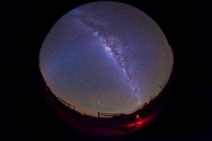 Last frame of an all-night time-lapse sequence of the southern Milky Way, from Atacama Lodge, Chile. This taken with an undriven Canon 5D MkII camera, 8mm Sigma fish-eye lens, and 45 seconds at f/3.5 and ISO 3200. My tracking platform with the other camera taking tracked shots is in the foreground at right.
