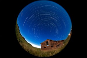 A circumpolar star trail shot, with an old farm shed as the landscape focus. Taken July 14, 2011 at an old farmstead near home in southern Alberta. This is a stack of 400 18-second exposures, 1s apart, taken with the Canon 5D MkII at ISO 800 and 8mm lens at f/5, taken over 2 hours from 11:10 pm to 1:16 am.