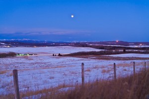 This is the total eclipse of the Moon, December 10, 2011, taken from the grounds of the Rothney Astrophysical Observatory, near Priddis Alberta, and looking west to the Rockies. This is an 8 second exposure at ISO 800 with the Canon 5DMkII and Sigma 50mm lens at f/2.8. This was taken about midway through of totality, at 7:28 am local time.