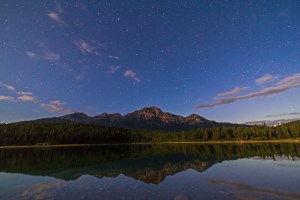 The Big Dipper over Pyramid Mountain and Patricia Lake in Jasper National Park, Alberta. Taken July 28, 2012 with Canon 7D and 10-22mm lens for 45s at f/4 and ISO 800. Moonlight from waxing gibbous Moon (off camera) provides the illumination. Jasper is a Dark Sky Preserve.