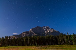 The Big Dipper and Arcturus (at left) over Cascade Mountain in Banff National Park, Alberta. Taken July 29, 2012 with Canon 5D MkII and 16-35mm lens for 48s at f/4 and ISO 800. Moonlight from waxing gibbous Moon (off camera) provides the illumination. Taken on meadows near Johnson Lake turnoff on Lake Minnewanka loop road.
