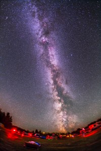 The northern summer Milky Way over the Saskatchewan Summer Star Party in Cypress Hills, Saskatchewan, Canada, August 18, 2012. Taken with the Canon 5D MkII at ISO 800 and 15mm lens at f/4 for a stack (mean combined) of four 5 minute exposures, all tracked. The ground is from only one of those expoures (the gorund is masked out in the other layers).