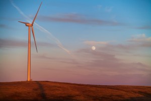 The September 28, 2012 Harvest Moon, with a wind turbine from the Wintering Hills Wind Farm near Drumheller, Alberta. Taken as part of a time lapse movie sequence. Canon 5D MkII and 28-105mm lens, automatic exposure.