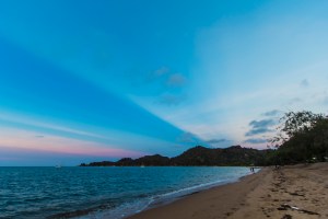 Anti-crepuscular rays opposite the Sun caused by cloud shadows, at sunset, from Horsehoe Bay, Magnetic Island, near Townsville, Queensland, Australia. Taken November 2012.