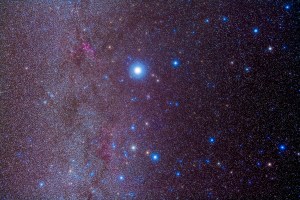 The constellation of Canis Major and nearby open clusters and nebulas, taken from Coonabarabran, NSW, Australia, December 13/14, 2012, with Sigma 50mm lens at f/3.2 and the filter-modified Canon 5D MkII at ISO 800 for stack of 6 x 4 minute exposures. M41 is below Sirius, M46 and M47 are to the left edge of frame. M50 is above the Seagull Nebula, IC 2177 at upper left. Some exposures had light cirrus cloud passing through which added the star glows naturally. I have turned Canis Major right side up but from Australia it would appear upside down — the part of the frame closest to the horizon when I took this was the top of the frame. Sirius is at upper centre, vastly overexposed.