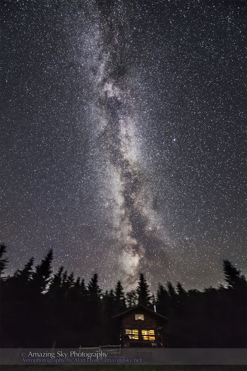 This was the view this morning, at 2 a.m., as the Milky Way of northern summer shone over my vacation log cabin on the Reesor Ranch in Saskatchewan. After the clouds cleared the sky was beautifully dark for a while before the early dawn twilight came on.