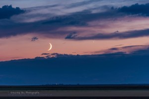Moon and Venus (Sept 8, 2013) The waxing crescent Moon near Venus on the evening of Sunday, September 8, 2013, taken from home. Taken with the Canon 60Da and 135mm lens at f/2.