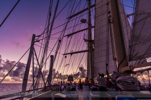 The waxing crescent Moon and Venus, on November 6, 2013, from the Star Flyer sailing ship in the Atlantic Ocean at roughly 15° N and 50° W, three days after the total eclipse of the Moon November 3, 2013.