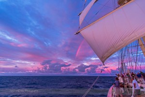 Red rainbow at sunset over the Atlantic Ocean from the svp Star Flyer, November 8, 2013, en route from Canary Islands to Barbados on a trans-Atlantic crossing to see the November 3 total eclipse of the Sun.