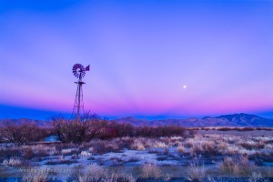 Sunset twilight colours and the waxing gibbous Moon over the Chiricahua Mountains in southeast Arizona, south of Willcox. Taken December 15, 2013 on Highway 186. Taken with the 24mm lens and Canon 5D MkII. Some dark crepuscular rays are visible converging to the anti-solar point.