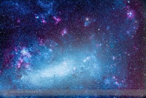 The Large Magellanic Cloud (LMC), an irregular satellite galaxy of the Milky Way, and one of the prime attractions of the southern hemisphere sky. At left is the Tarantula Nebula, NGC 2070, while at upper right is the second brightest nebula in the LMC, NGC 1763, aka the LMC Lagoon. In between are an amazing number of nebulas, both magenta and cyan in tint, as well as clusters of stars. The LMC is 160,000 light years away, and is gravitationally bound to the Milky Way, though there is some dispute whether it is orbiting the Milky Way or is passing by.