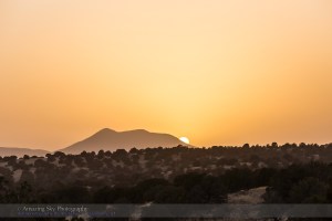 Sunset on April 30, 2014 from near Silver City, New Mexico, on a hazy evening with a lot of obscuring dust from high winds earlier in the day. Shot with the 135mm lens and Canon 6D.
