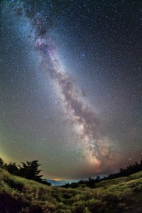 The northern summer Milky Way from Sagittarius to Cepheus, as shot from the summit of Mt Kobau, near Osoyoos, BC at the Mt Kobau Star Party, July 28, 2014. This is a stack of 5 x 5 minute exposures with the 15mm lens at f/2.8 and filter-modified Canon 5D Mark II at ISO 1600. The ground is from one exposure. Taken as part of a test of the Sky-Watcher Star Adventurer tracking platform.