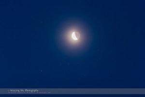 Waning Moon in the Hyades and near Aldebaran, the morning of August 18, 2014, Taken with a fixed camera on tripod with the 135mm telephoto and Canon 60Da for a single exposure at 0.4 second at f/2 and ISO 1000. A series of HDR images would not align in Photoshop or Photomatix.