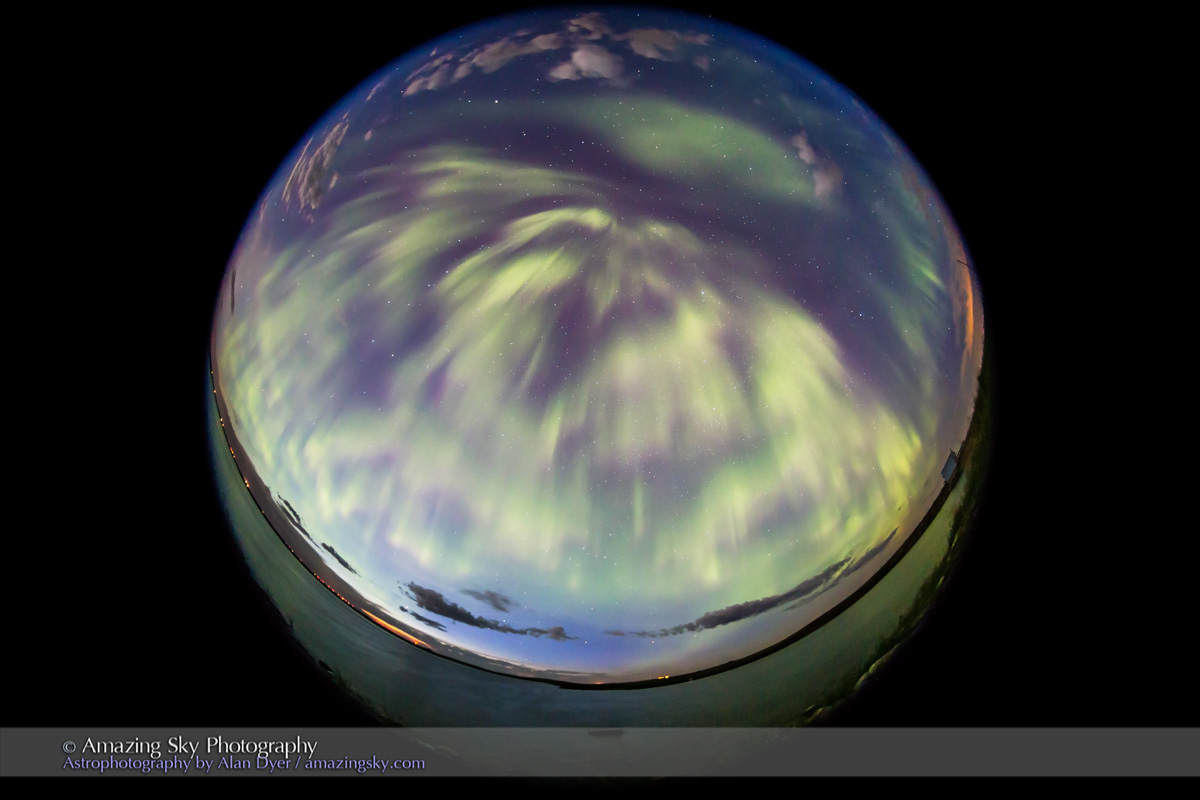 One sequence records the entire sky and the complete development of the display, from when it first appeared in twilight about 11:15 p.m., to when it faded into a diffuse glow across the sky by 1:15 a.m. I shot that sequence with an 8mm fish-eye lens, to capture a scene suitable for projection in a digital planetarium theatre.