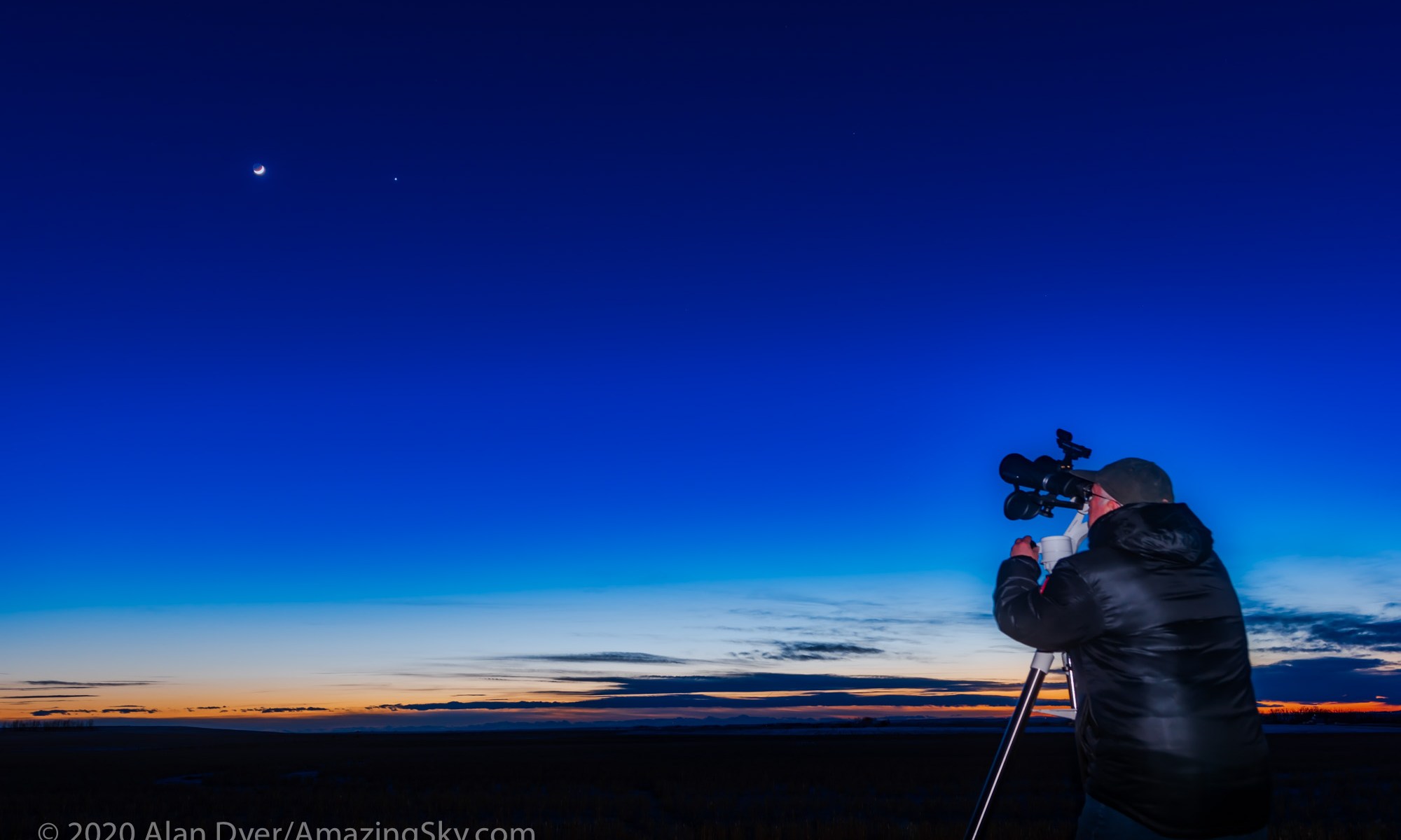 I shot and narrated video footage of the thin crescent Venus, my parting shots of Venus for its evening appearance in 2020.