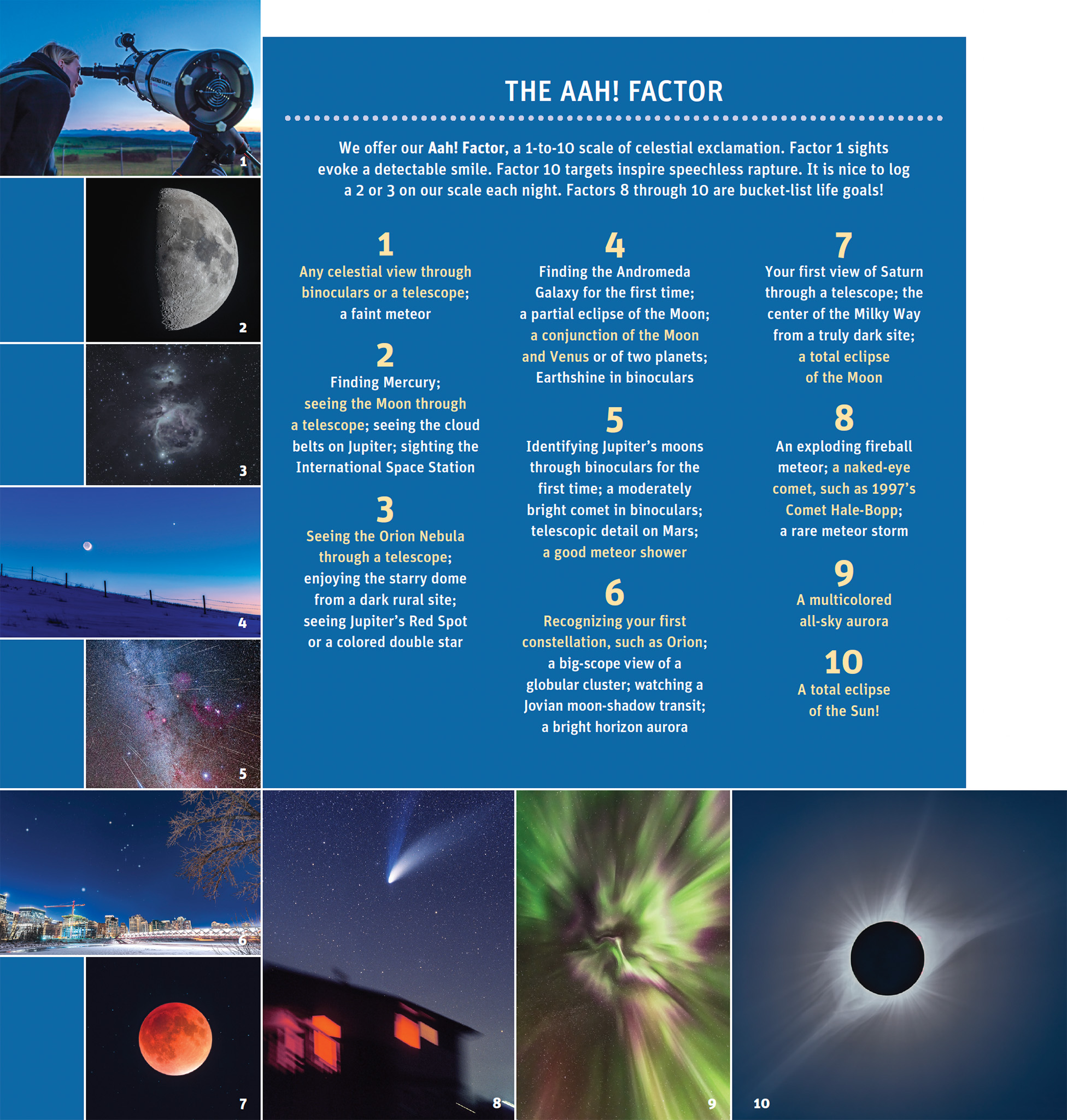 In our book The Backyard Astronomer’s Guide (which we revised this year), Terence Dickinson and I created an Aah! Factor scale with various celestial sights ranked from: