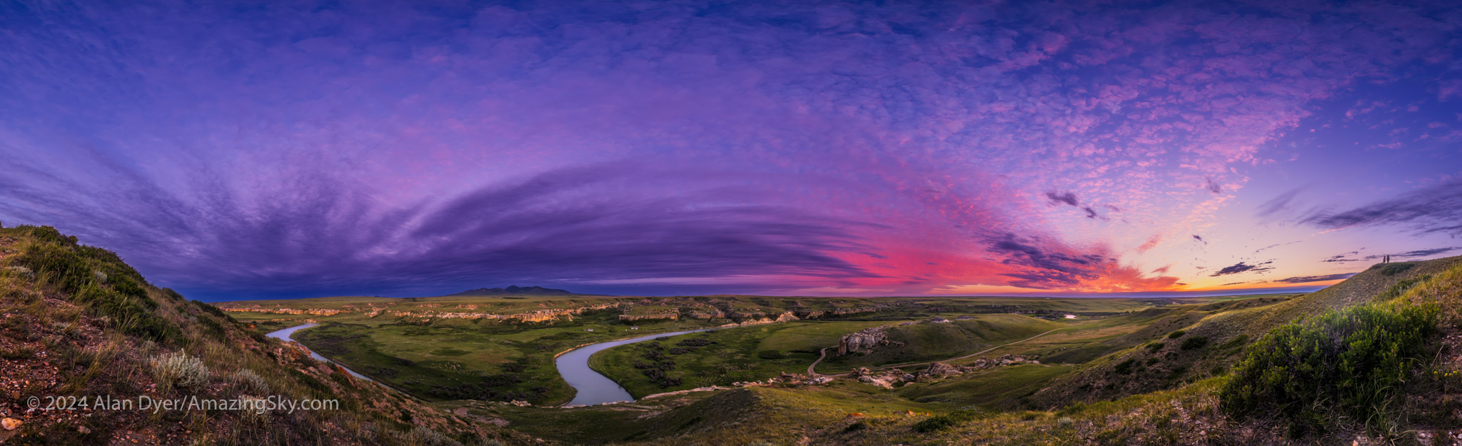 The rock formations of Writing-on-Stone Provincial Park are a bit farther, requiring a couple of days commitment to shoot. Clouds hid the main attraction, the Milky Way, this night, but did provide a fine sunset.