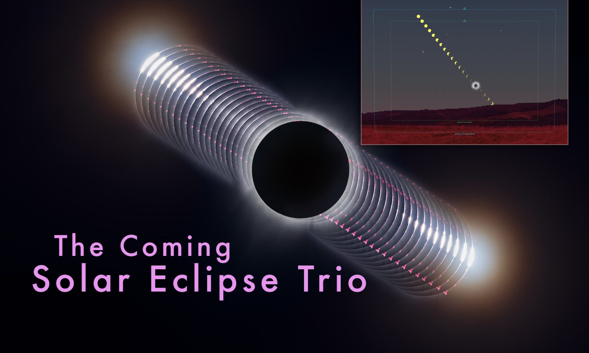 Typically, total eclipses of the Sun occur about 18 to 24 months apart. Unusually, in the next three years, we have a trio of total eclipses each only a year apart. Or to be precise, a lunar year โ 12 lunar phase cycles โ apart.