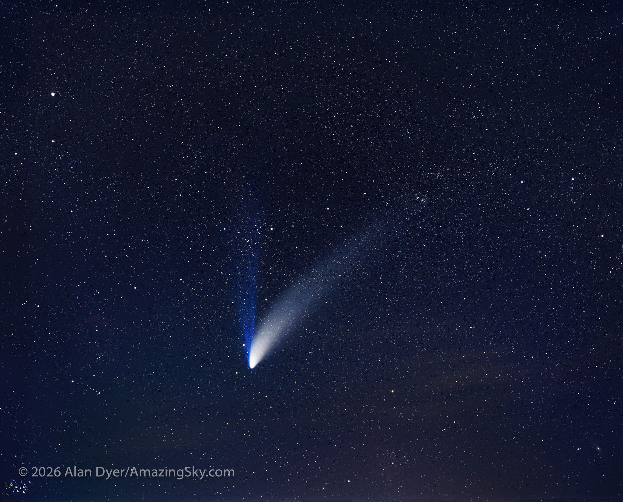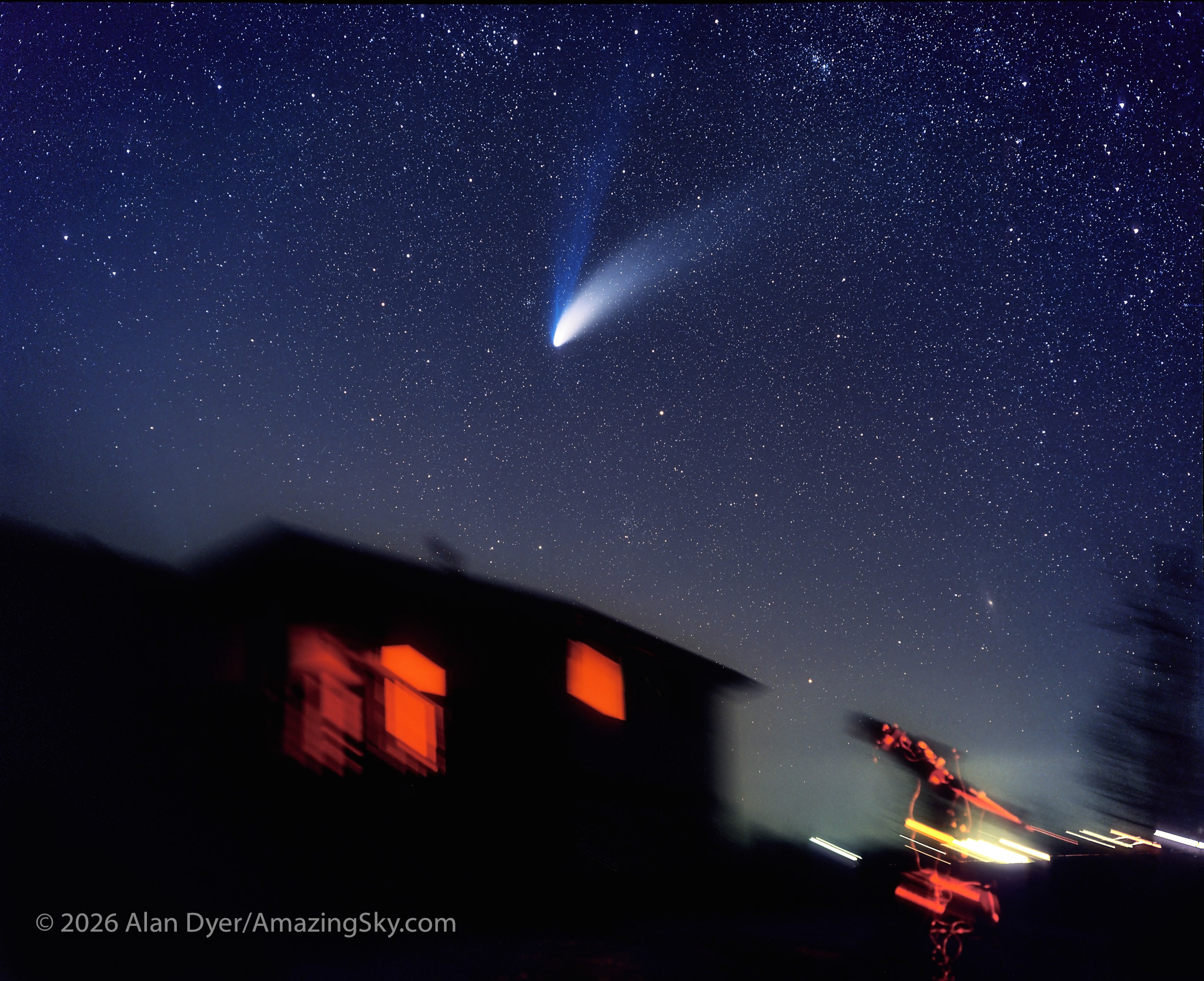 Ah! Those were the good old days – and nights – shooting with film. The occasion of the 30th anniversary of the great Comet Hyakutake in March 1996 prompted me to revisit my old film shots of that comet, and of Comet Hale-Bopp a year later in April 1997, as below.