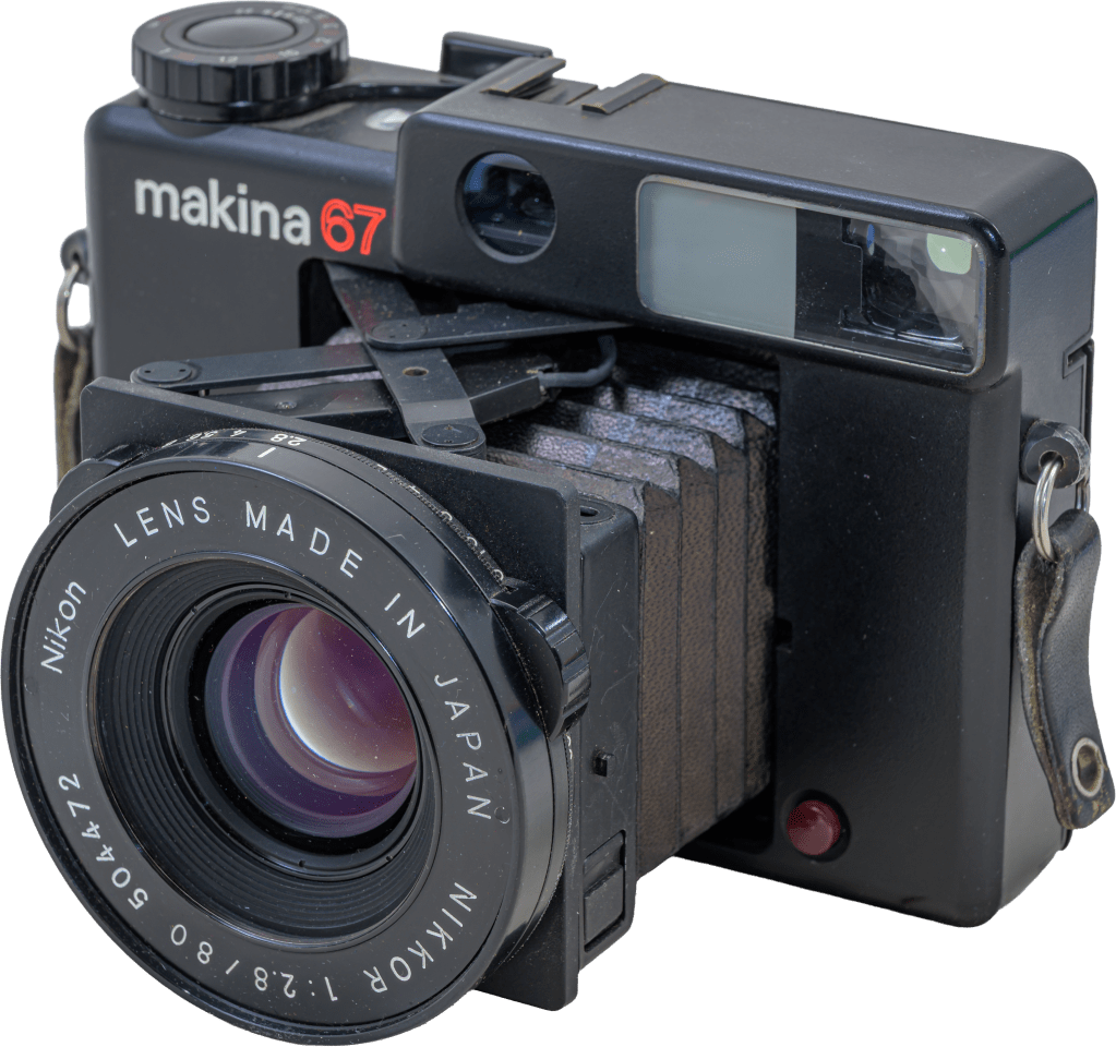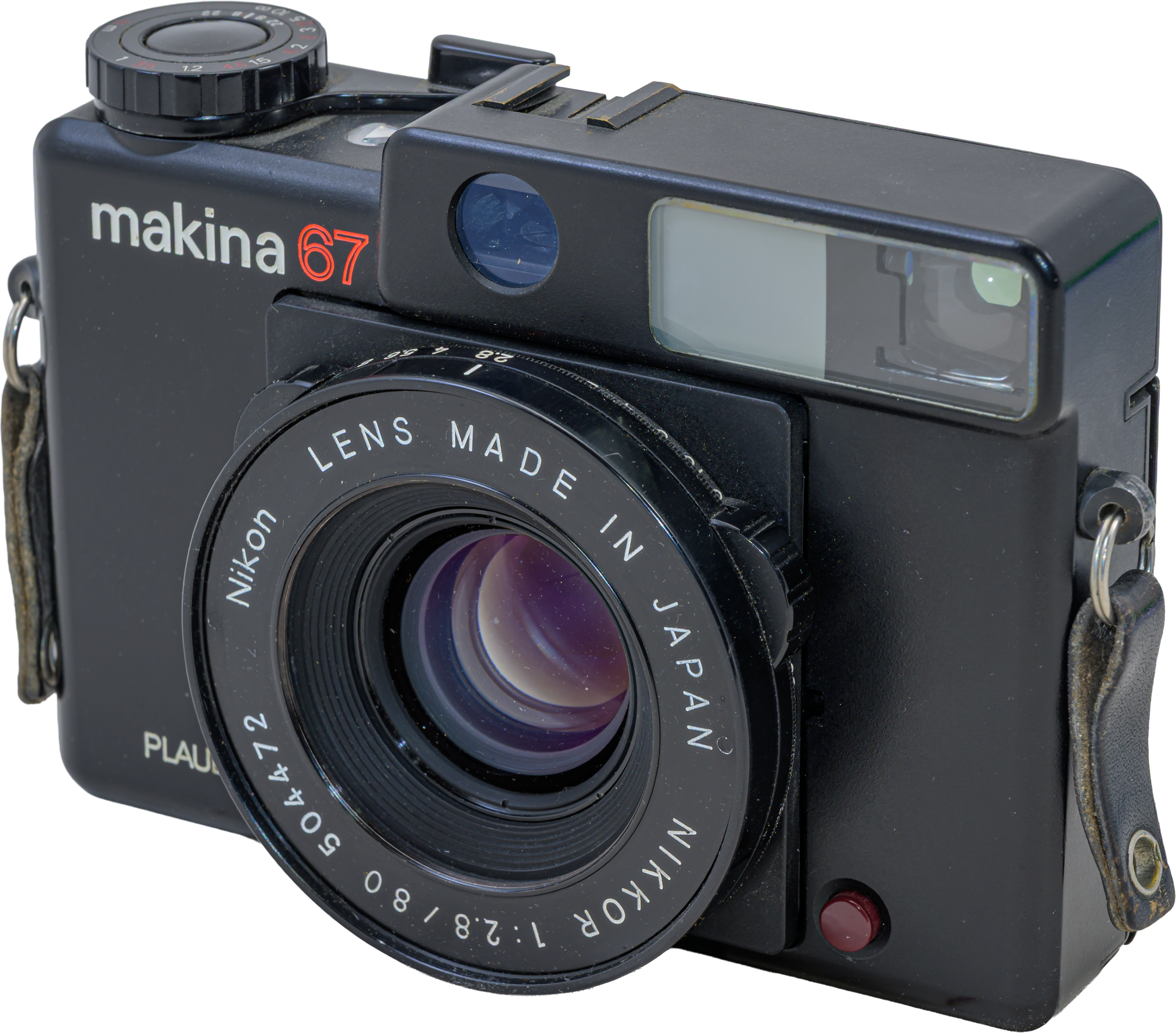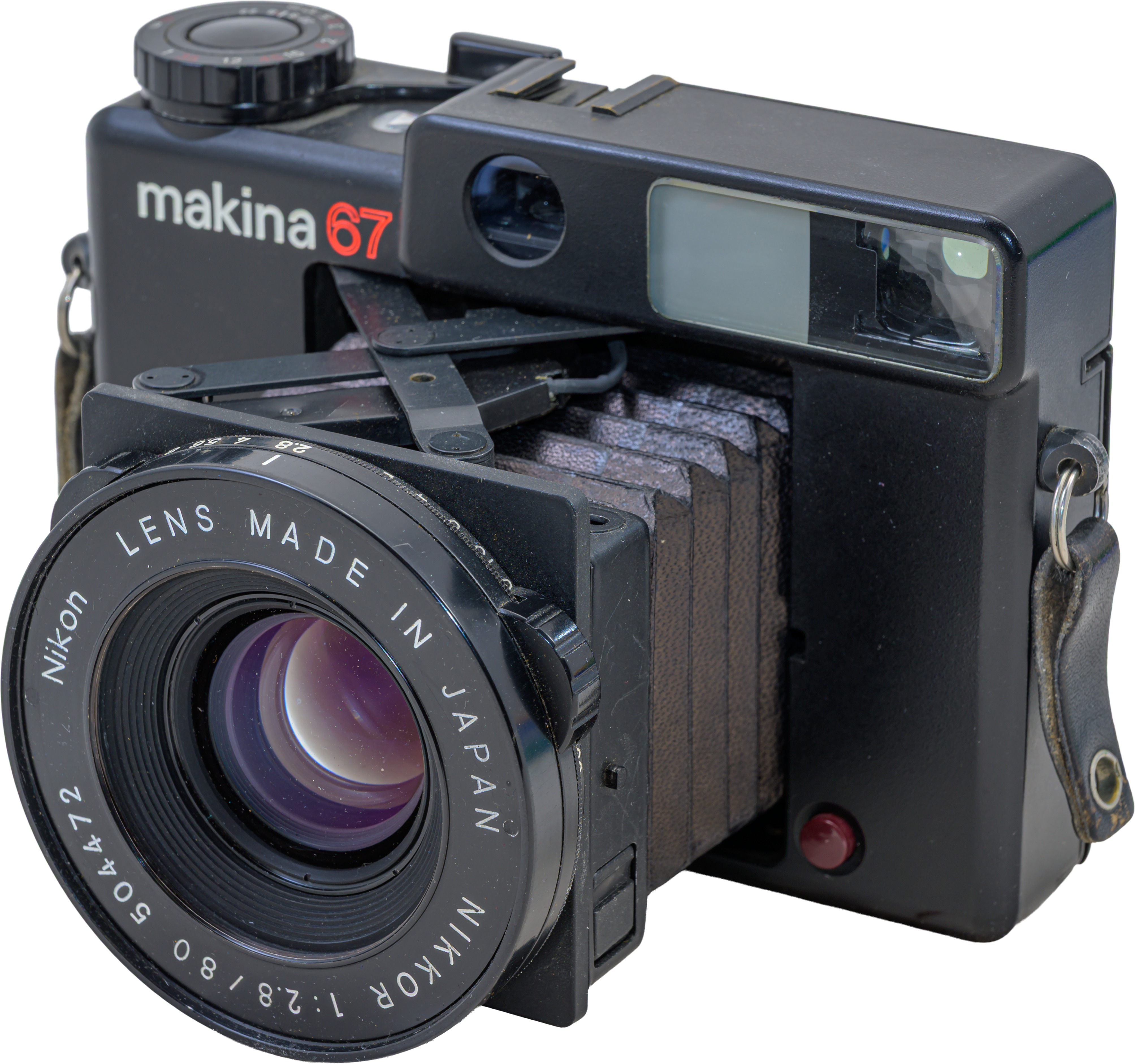 But the lens was fixed, and was a Nikkor 80mm f/2.8 made by Nikon. That’s the equivalent of a 40mm normal/slightly wide-angle lens on a full-frame sensor today (or on 35mm film). The lens was on a bellows that could collapse back to make a compact, almost pocketable camera. Thus today, with the resurgence in popularity of film, the Makina is still sought after, not just by collectors to put on a shelf, but by those wanting to put it to use in the field.