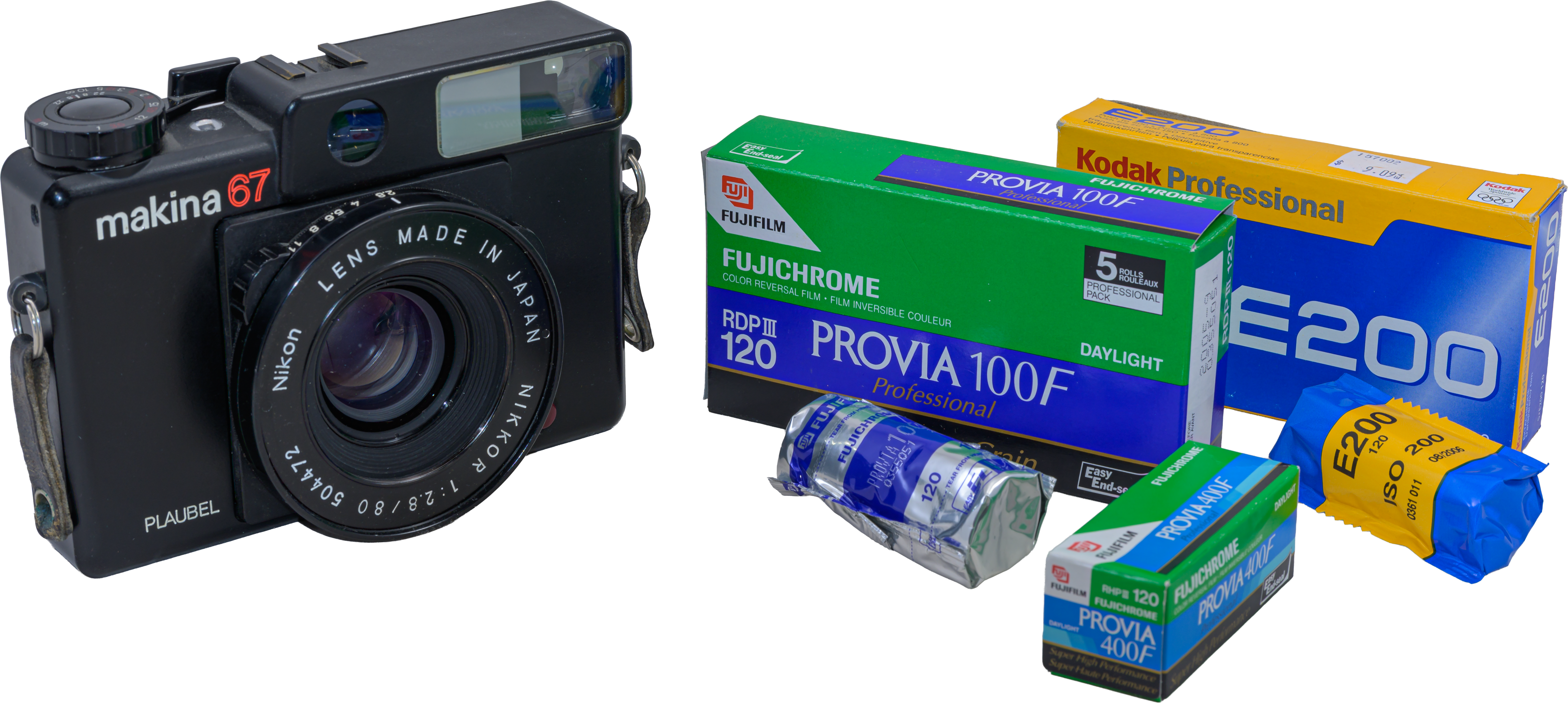 In this case, all the photos I present here (with one exception) I shot with the rather rare, and as it turns out collectible medium-format camera, the Plaubel Makina 67. It used 120- or 220-format film which, for this camera, yielded images 60mm by 70mm in size, larger than today’s “medium-format” digital camera sensors. I scanned all the negatives or positive slides with a Nikon 8000 film scanner.
