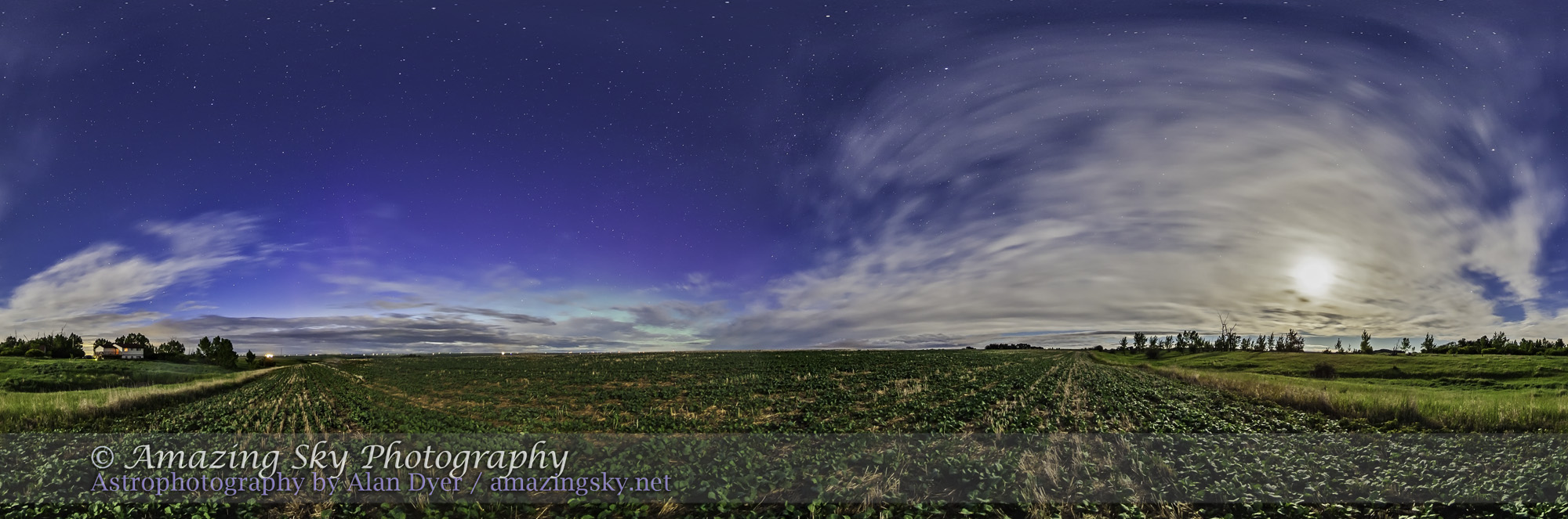 On a night like this, I try to shoot not only single still images and videos, but also multi-image panoramas, such as the circular images earlier and these two rectangular “panos” above. Both cover a full 360ยบ in width but don’t go up to the zenith.
