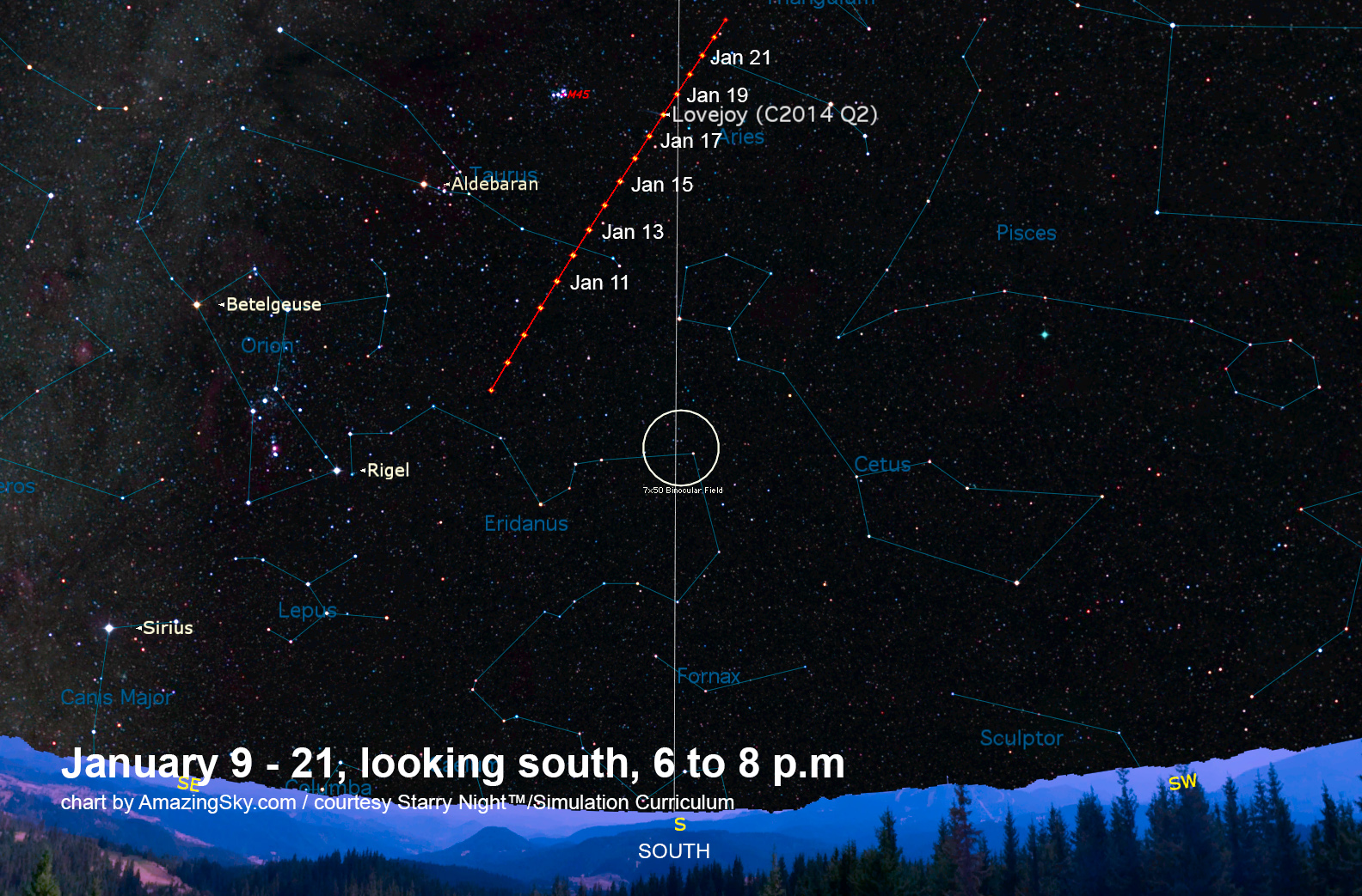 Here’s where to find Comet Lovejoy over the next couple of weeks, during the current dark-of-the-Moon period.