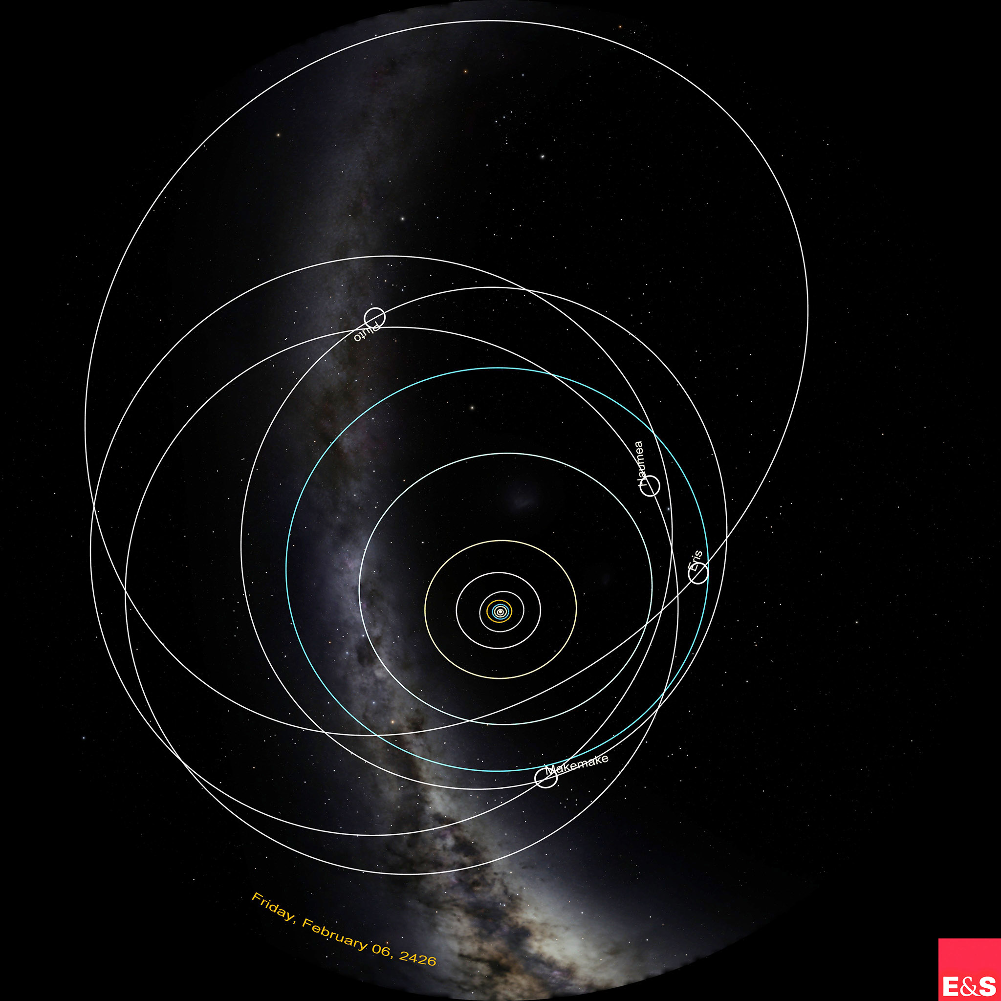 But Jupiter is also near its annual opposition point in its orbit. The official date of opposition is Friday, Feb. 6. On that date Earth passes directly between the Sun and Jupiter โ our three worlds lie in a line across the solar system. We are then closest to Jupiter and Jupiter appears opposite the Sun.