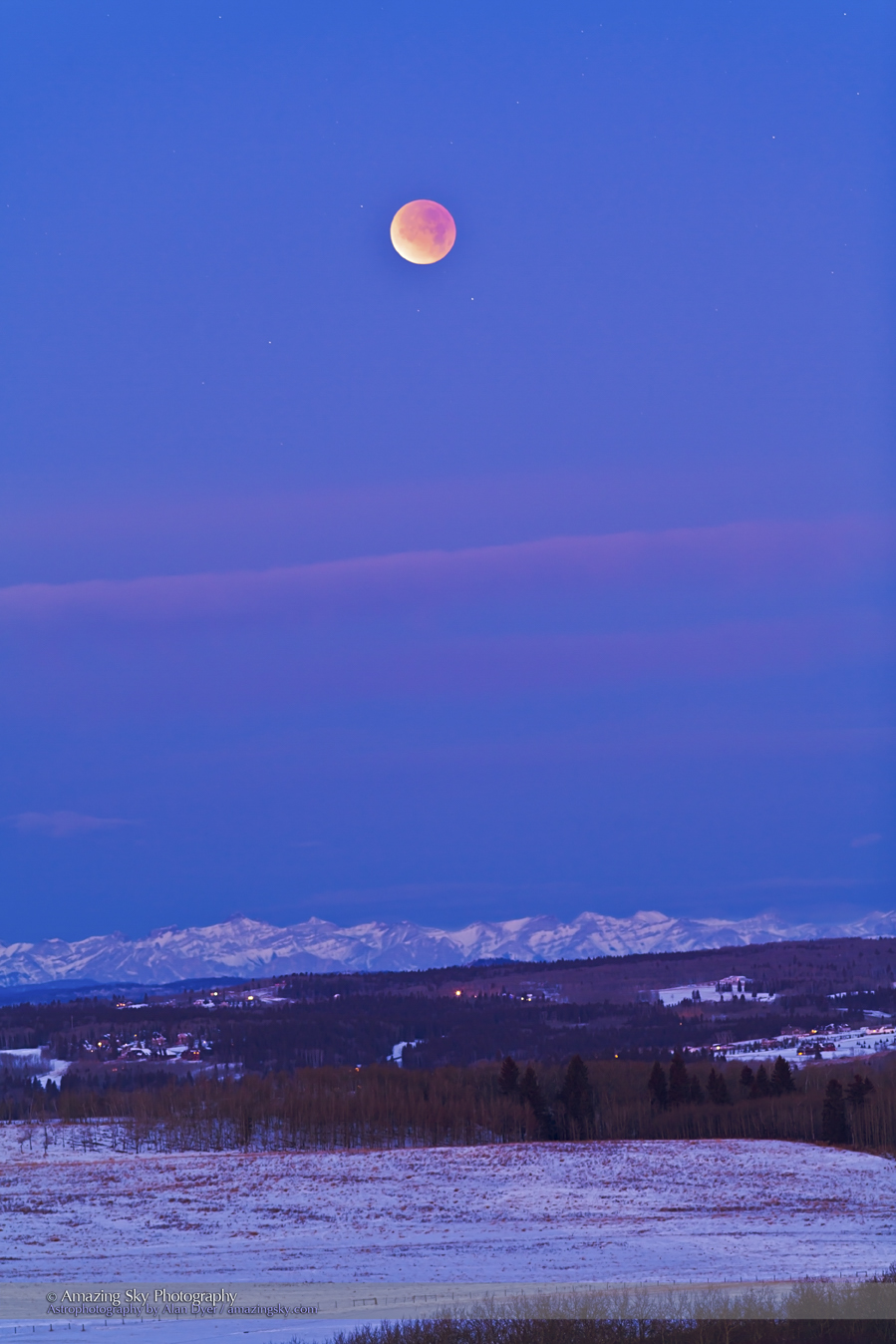 The rising of the winter “Wolf” Moon, the Full Moon of January, over the frozen Crawling Lake Reservoir, in southern Alberta.
