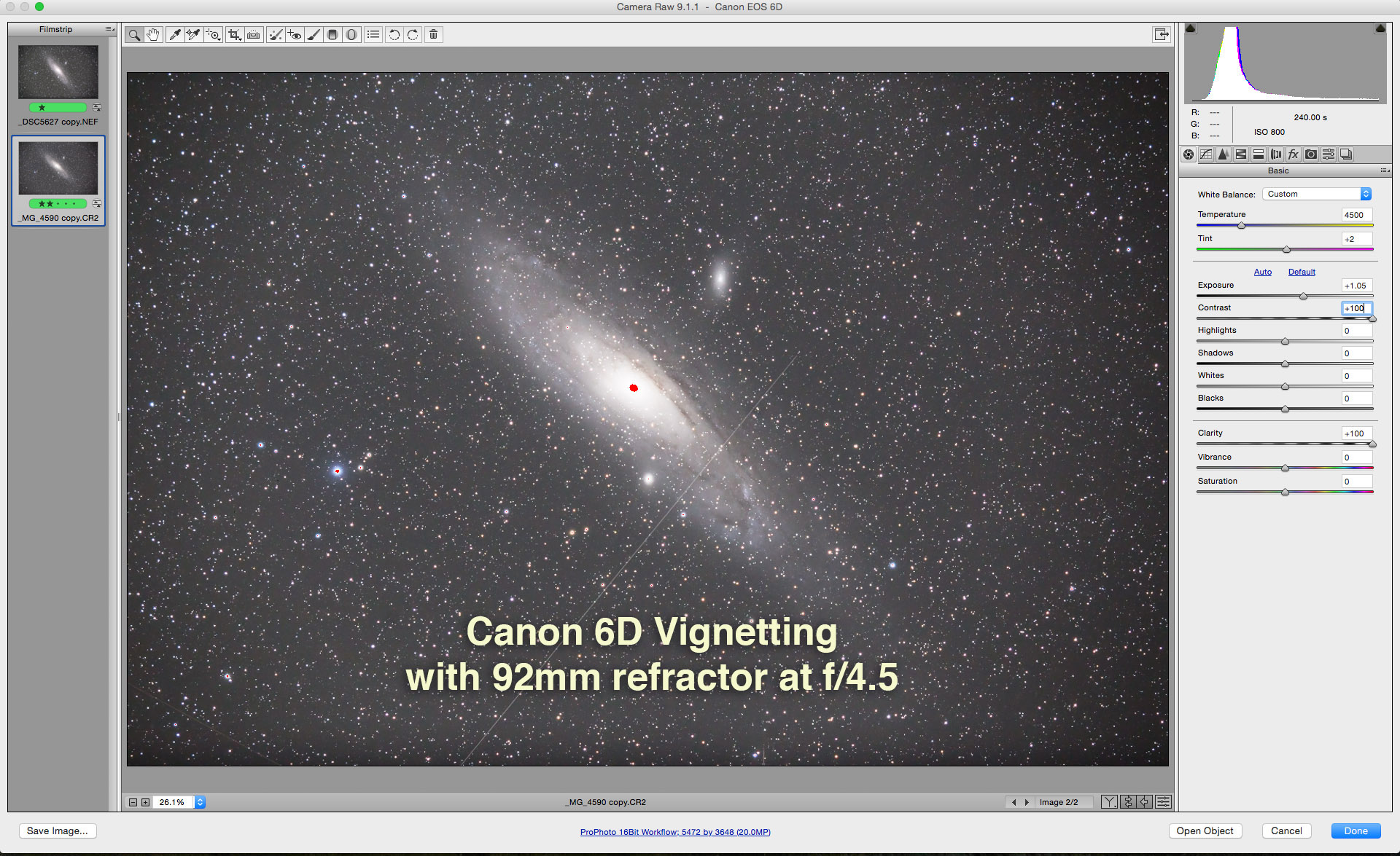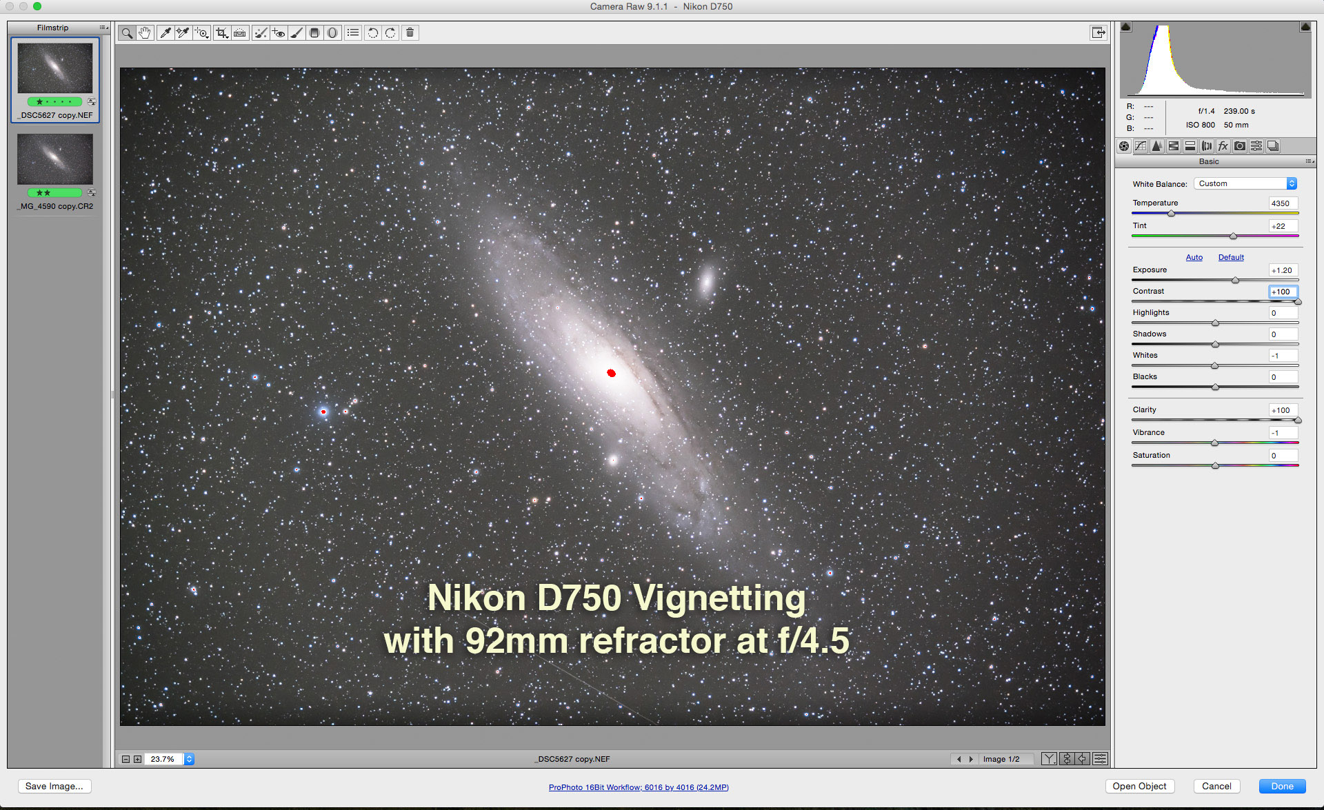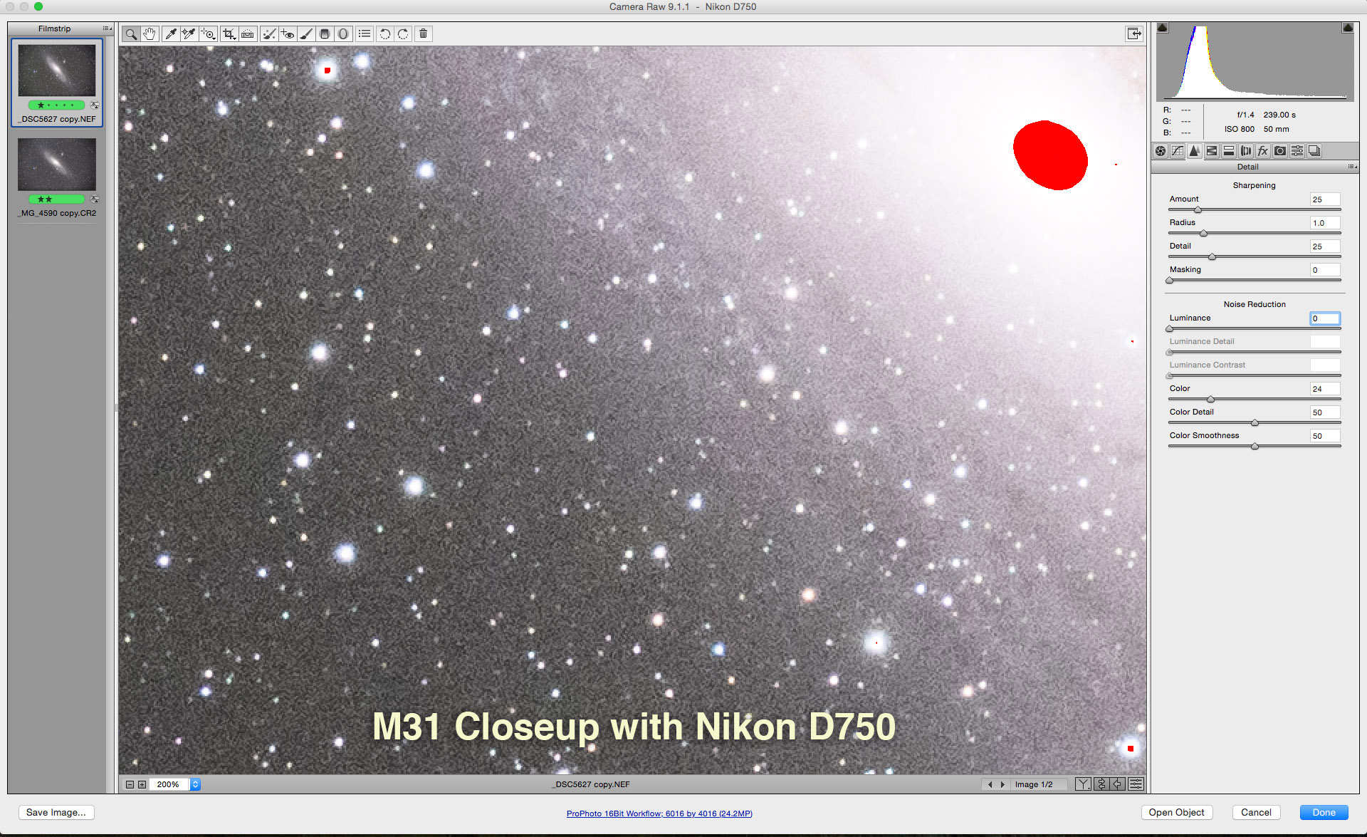 This is through the TMB 92mm refractor for a focal length of 500mm using the Canon 60Da at ISO 400 for 1/250 second.