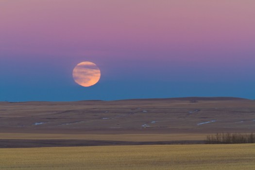 I shot this from southern Alberta with a Canon 60Da and an 18-200mm lens at 115mm to frame the Moon and prairie landscape.
