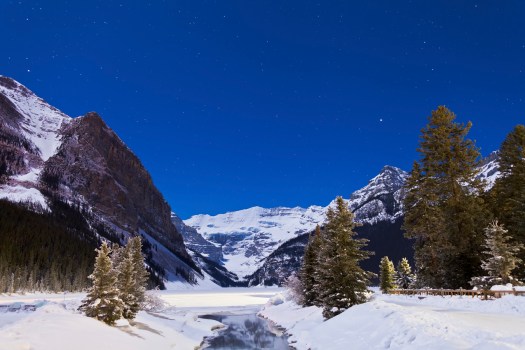 This is Lake Louise, in Banff National Park, Alberta. A few hours before I took this photo on Saturday, August 13, where I stood would have been swarming with thousands of people. But at midnight there was no one about. I had the view to myself.