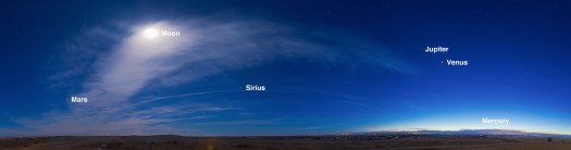This was a beautiful night, with the array of five worlds stretched across the sky, a parade of planets and the Moon.