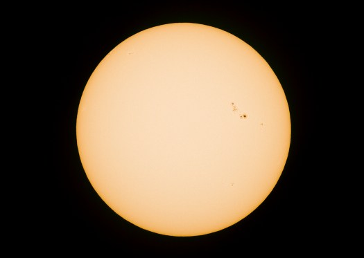 It hit the headlines this past week as it let loose several intense solar flares, triggering geomagnetic storms around Earth and some aurora displays. Even as I took this shot of the Sun on Saturday afternoon, through a normal white light filter, Region #1429 was unleashing another intense flare, visible in red H-alpha light as a brilliant bright spot embedded in the dark sunspot. We can expect some more solar storms heading our way, and perhaps displays of northern lights.