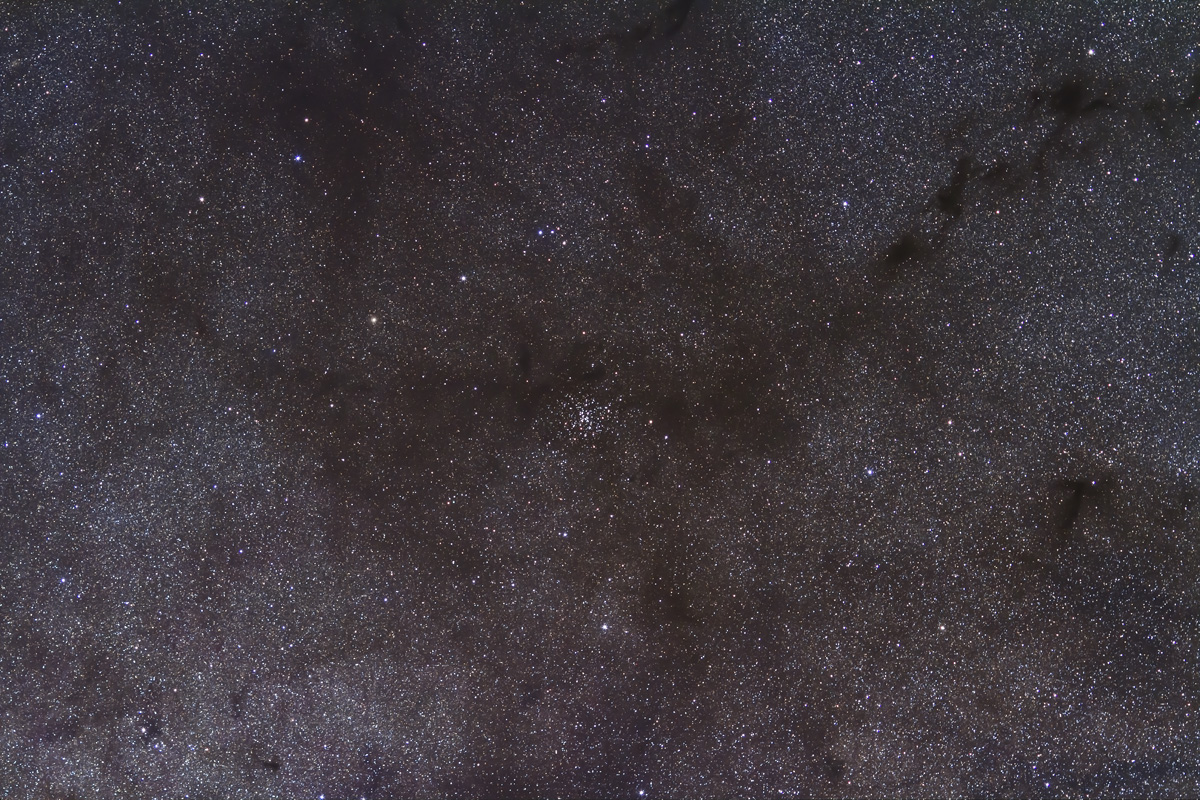 — You can see the large-scale structure of the dust clouds and the odd diagonal sweep of many of the clouds cutting across the plane of the Galaxy. I’ve never heard an explanation of why the dust lanes seem to have that structure and direction. I also see a 3D effect, with the nearby dust clouds hanging in front of and obscuring the bright starclouds of the distant inner spirals arms of our Galaxy.
