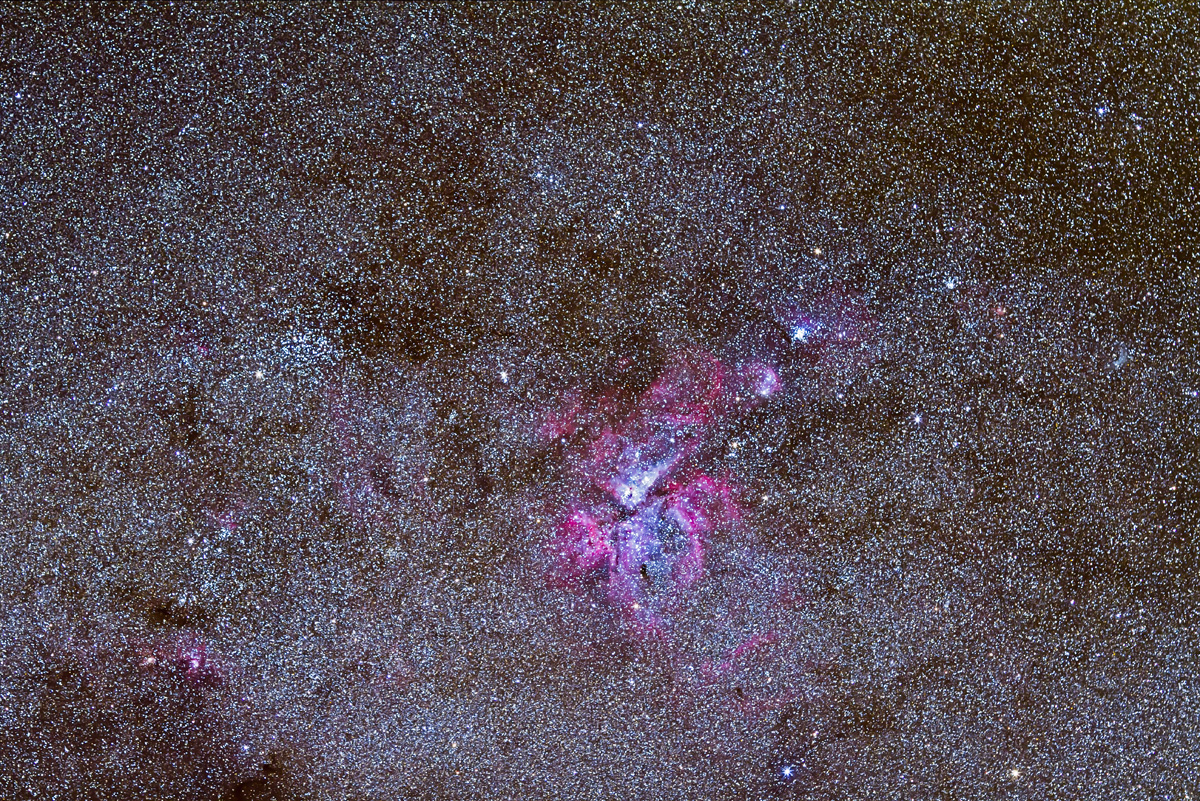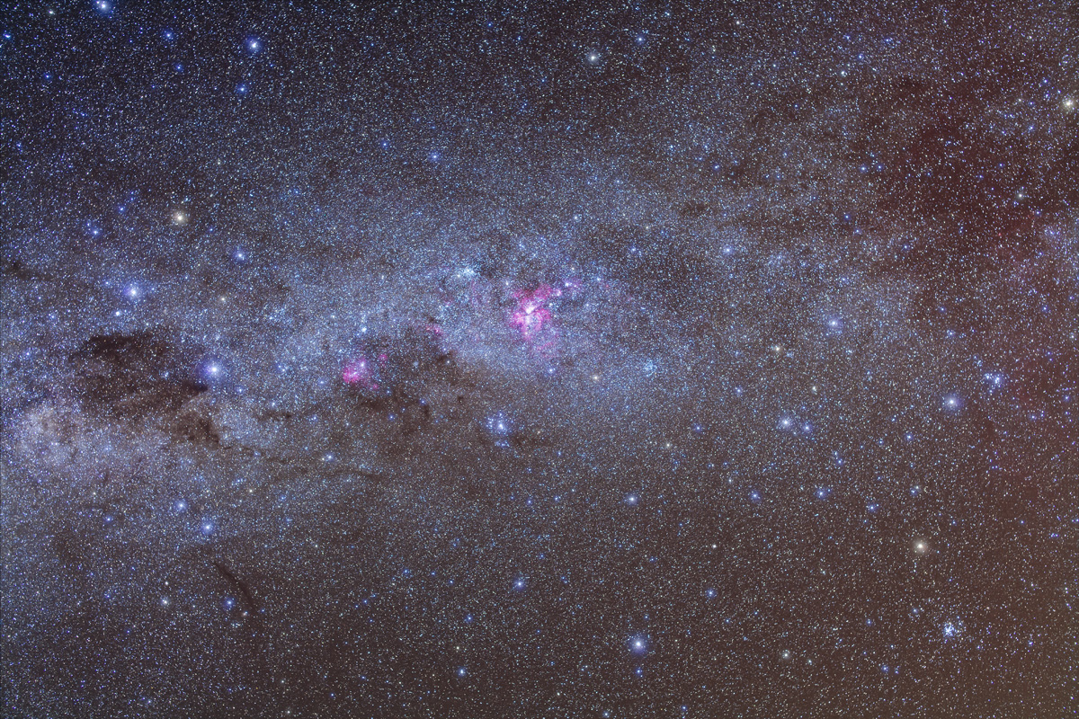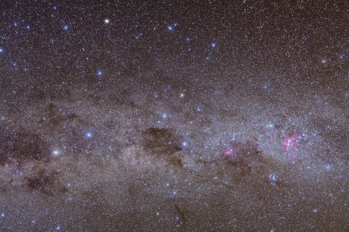 — And … as my Australian friends will point out, you can see the entire Dark Emu, made of the dust lanes from the Coal Sack in Crux at right (his head and beak), through the curving lanes in Centaurus (his neck), then sweeping up and over the centre of the Galaxy (his body) then down into Scutum and Aquila (his two feet and his tail).