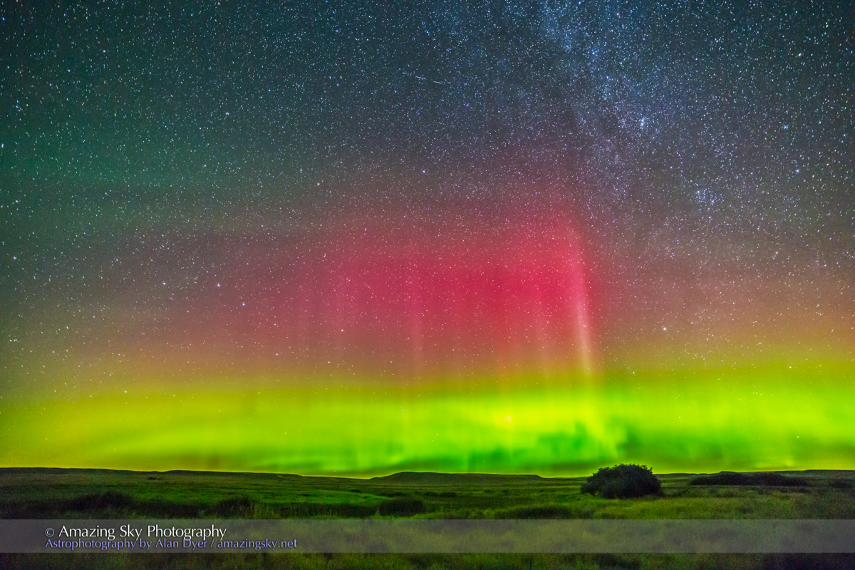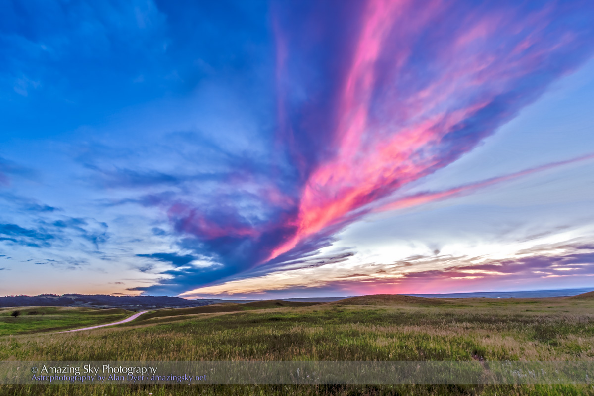 The next night (last night, July 26, as I write this) I was at another unique site in southern Alberta, Red Rock Coulee Natural Area. The sky presented one of Butler’s unmatched prairie sunsets.