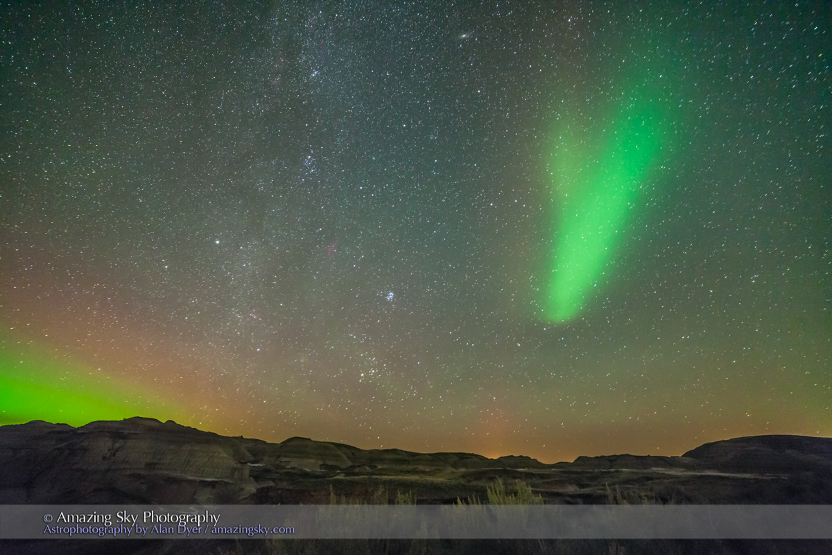 The night was near perfect, with the Milky Way standing out down to the southern horizon and the Sweetgrass Hills of Montana. Below, the Milk River winds through the sandstone rock formations sacred to the Blackfoot First Nations.