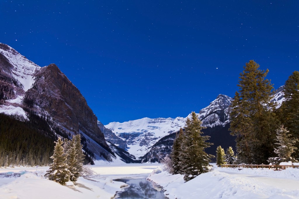 On my last night I was at Lake Louise, as the placement of the Milky Way would be perfect.