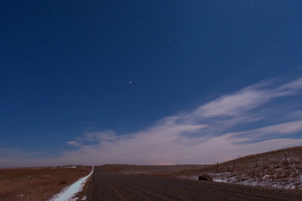 NOTE: I shot all these images during a run of fine nights in mid-April 2025 with a 15-35mm zoom lens on a Canon EOS R camera, and on a Star Adventurer tracker. Separate exposures through a Tiffen Double Fog 3 filter added the star glows.