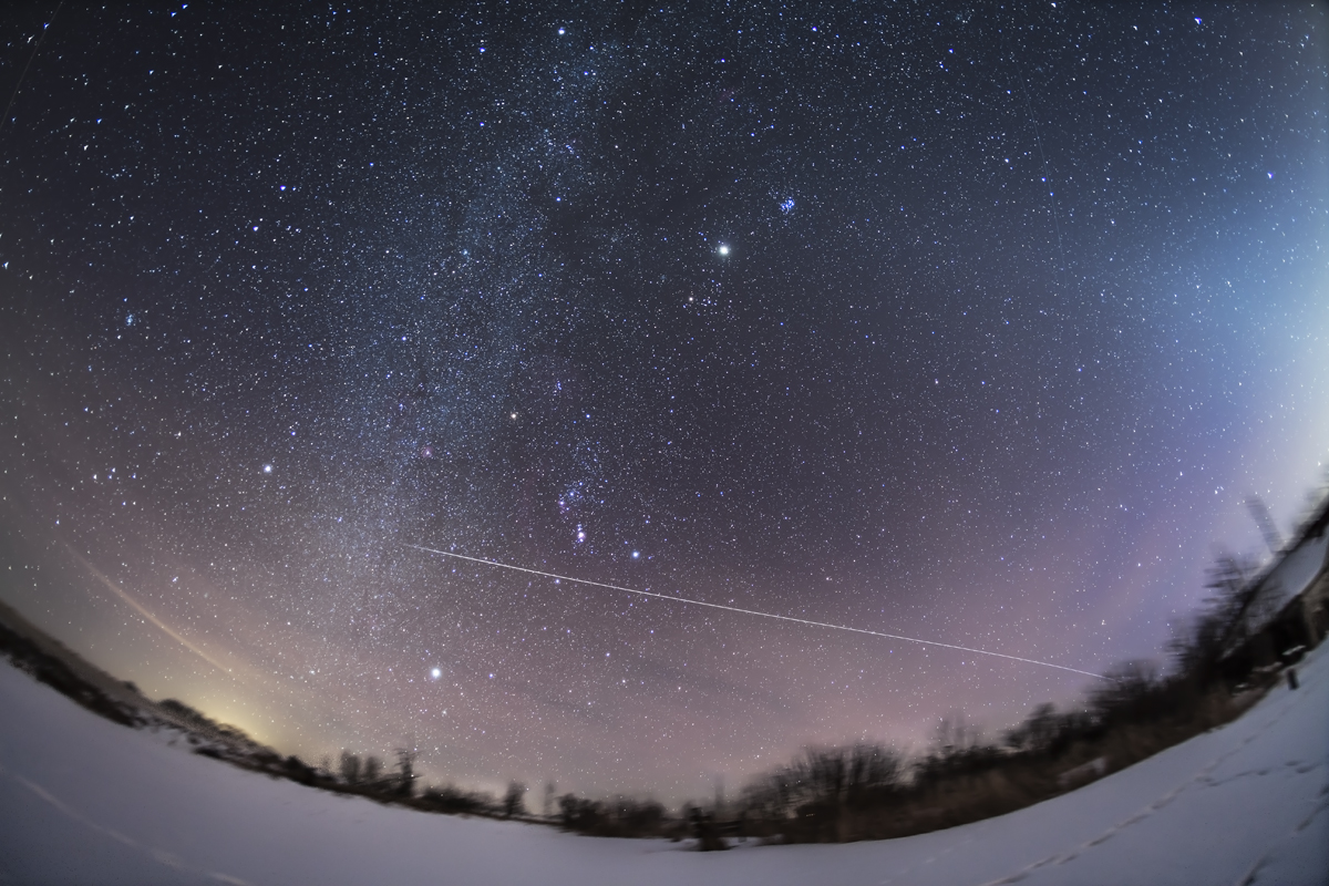 • the Milky Way from Puppis and Canis Major at left arching up and across the sky down into Perseus at right