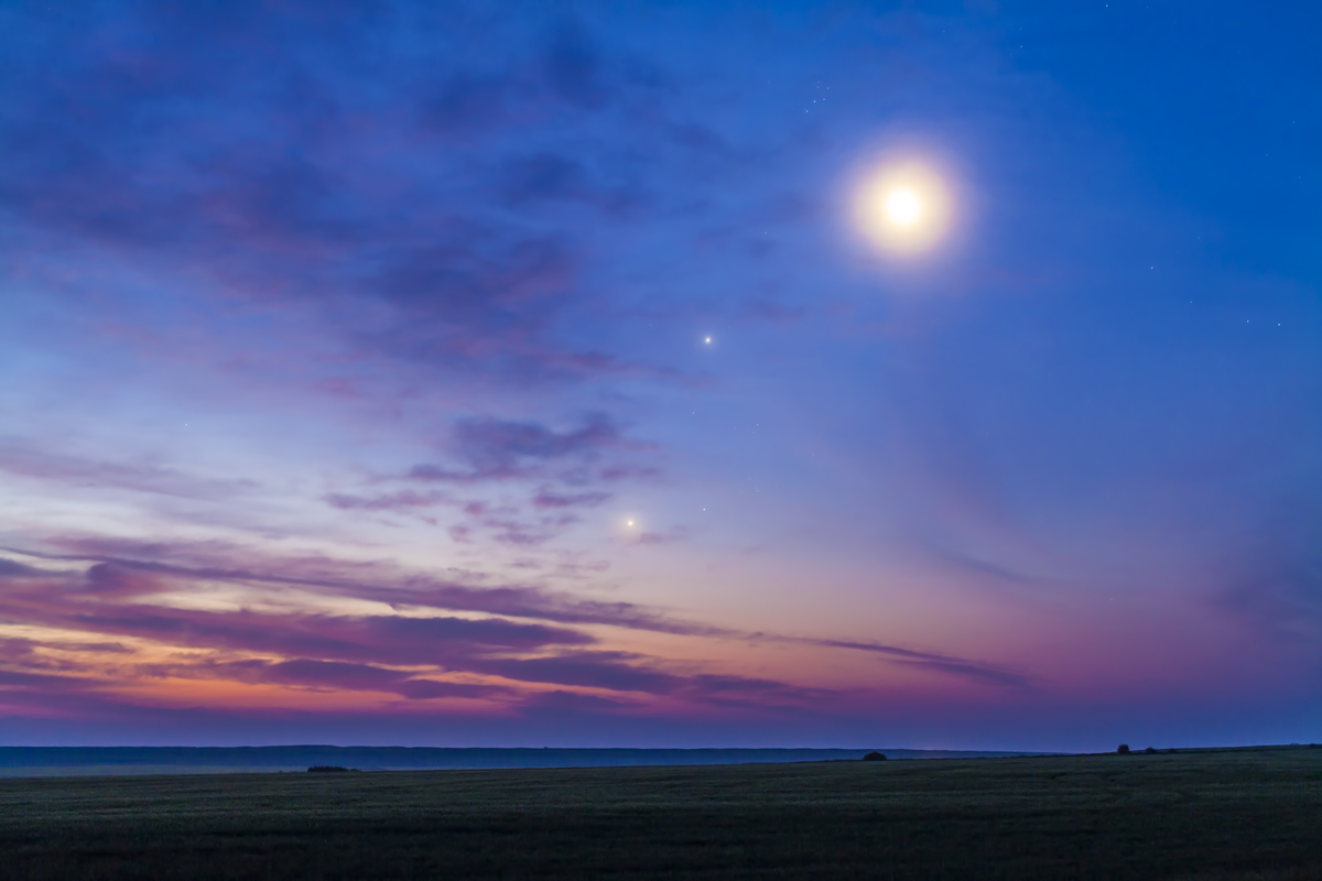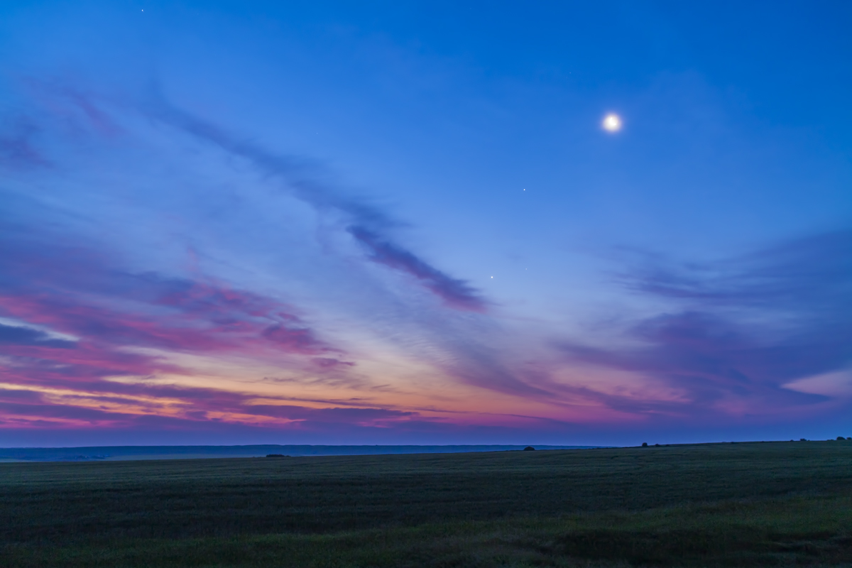 I shot an additional short exposure just for the Moon, to prevent its disk from overexposing too much, as it did in the twilight sky images.