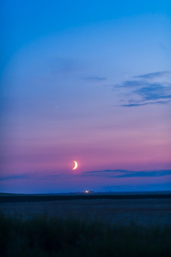As the sky lit up, I also shot the crescent Moon above the sunset clouds and prairie scene. While the clouds made for a fine sunset, they did not clear off, thwarting my Milky Way plans this night. I headed back to Milk River, to travel farther west the next day.