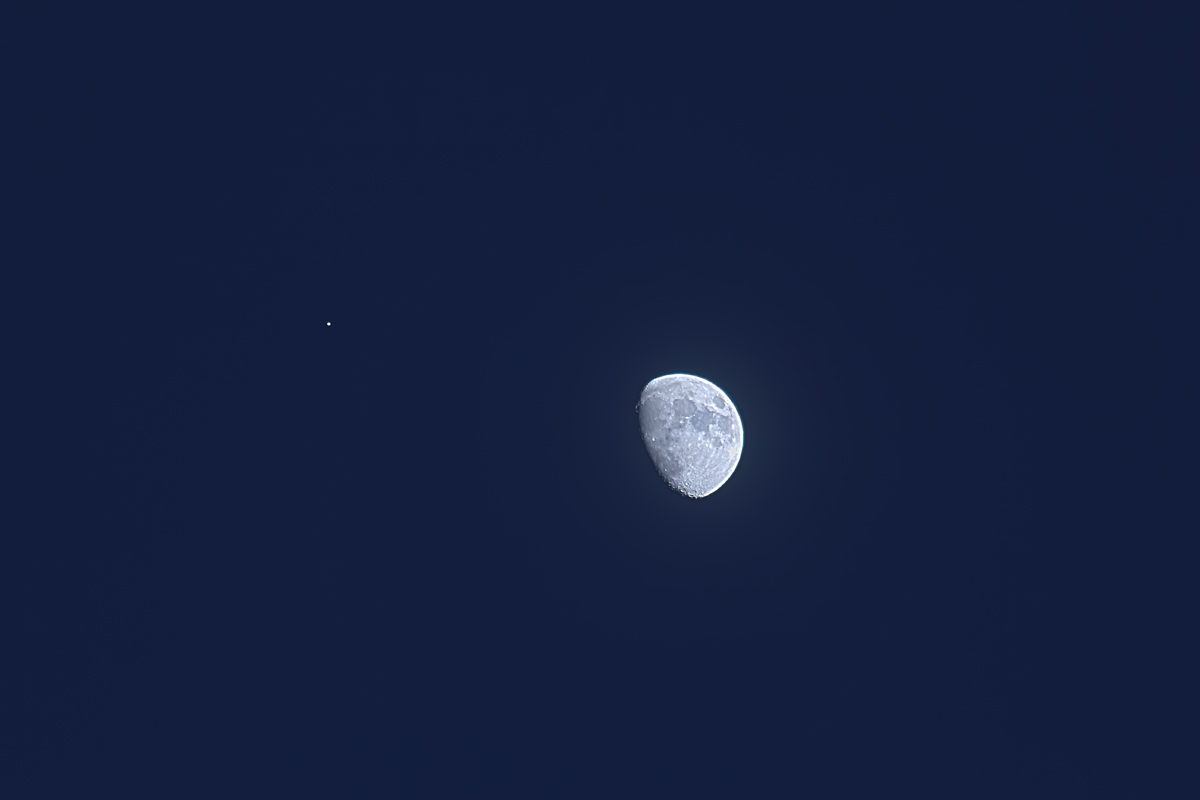 The image is a composite of a long and short exposure, in order to capture Jupiter so close to the Moon which, in a single long exposure, would have overexposed so much its light would have swamped Jupiter.