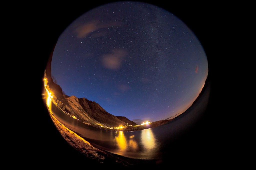 When I’m doing time-lapse sequences I often run two cameras, one with a wide-angle lens for a frame-filling rectangular view for “normal” HD movies (that’s what’s in the previous blog post), and another camera with a fish-eye lens for a circular format “all-sky” view. These scenes are for projection in full-dome digital planetariums.